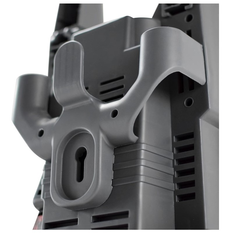 La dotazione accessori comprende pistola, tubo alta pressione da 4 metri con attacco rapido per aggancio pistola, lancia con testina Vario jet per regolazione del getto spillo o ventaglio e testina Turbo con getto rotante, lancia schiuma con serbatoio