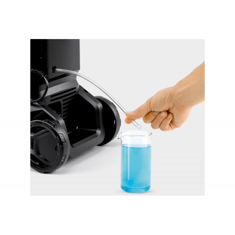 La dotazione include una pistola e un tubo ad alta pressione di 8 metri, una lancia Vario Power Spray (VPS), un ugello mangia sporco con getto rotante per la rimozione dello sporco ostinato.