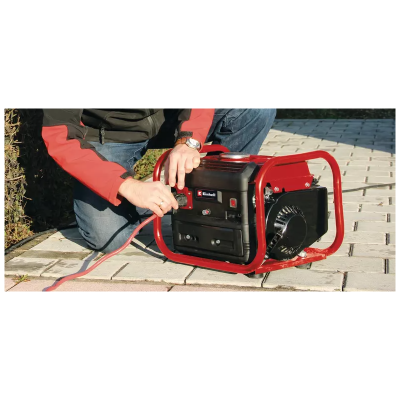 Il generatore di corrente (a benzina) TC-PG 10/E5 è alimentato da un motore a 2 tempi potente e resistente e fornisce una potenza costante di 680 watt. È adatto ovunque sia necessaria un'alimentazione elettrica autonoma: nei giardini, nei cantieri edili, in campeggio, in officine, garage o anche per le vacanze. L'elettricità viene fornita tramite una presa standard da 230 volt a cui è possibile collegare tutti i dispositivi, siano essi lampade, attrezzi per il giardino, utensili o elettrodomestici da cucina. Il generatore Einhell ha un telaio di supporto che svolge funzione di protezione e facilita il trasporto, mentre gli stabili piedini assicurano un appoggio sicuro quando è in funzione. Per proteggere il generatore e i dispositivi collegati, dispone di un interruttore magnetotermico. Il generatore di corrente viene acceso con cavo di avviamento.