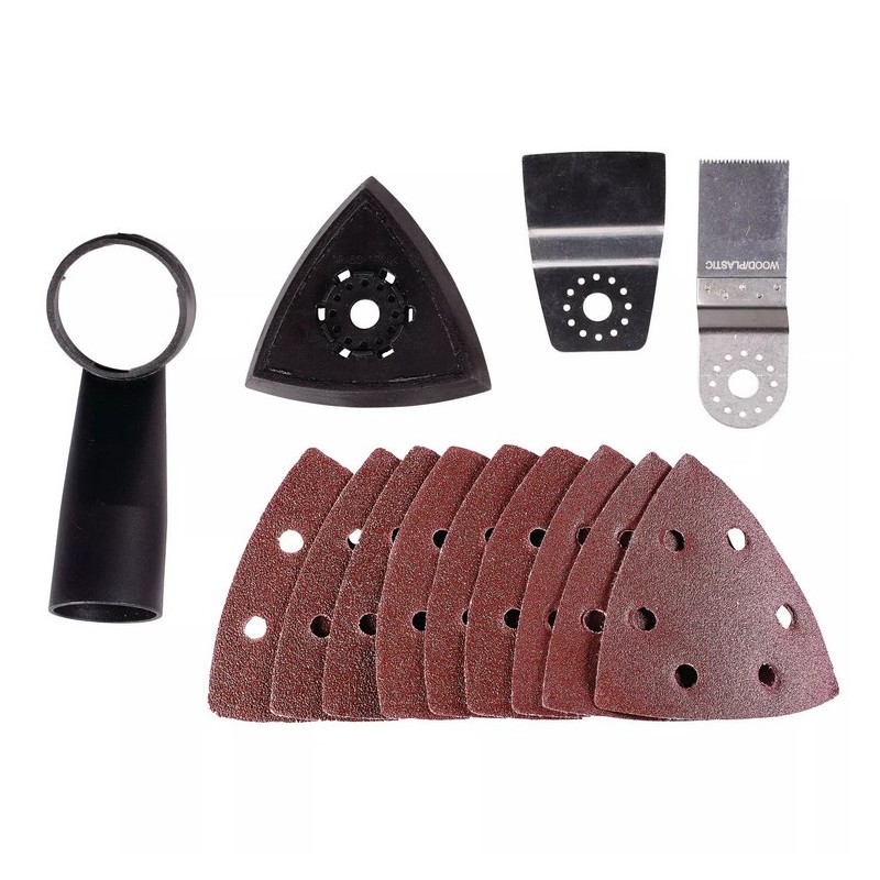 Piastra abrasiva triangolare per un'ampia area di lavoro.