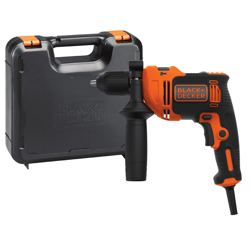 Modello BEH710K Potenza 710 W Velocità a vuoto 0÷2800 giri/min Percussioni 47600 colpi/min Coppia di serraggio 23,3 Nm Mandrino autoserrante 13 mm Foratura legno 25 mm Foratura metallo 13 mm Foratura muratura 13 mm Reversibile. In valigetta con 4 p