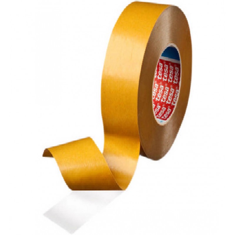 Nastro biadesivo, composto da un sistema di supporto in polipropilene bianco e una massa adesiva di gomma sintetica (a caldo)