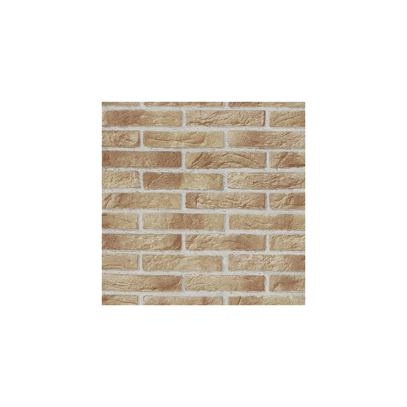 Carta da parati in carta con stile che evoca il tema della natura, con disegno e motivo mattone, di colore beige con effetto mattone.