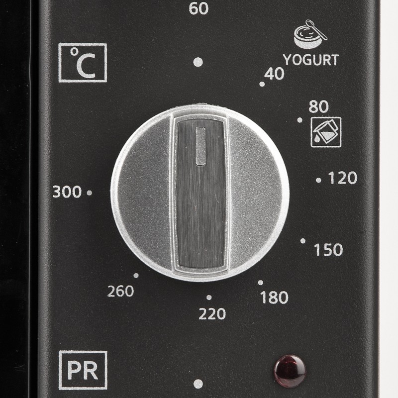 Le pareti interne smaltate rendono la pulizia semplice e veloce, mentre il termostato regolabile da 40° a 300°C permette di gestire con precisione qualsiasi tipo di cottura, dalle lievitazioni delicate alle preparazioni più intense.