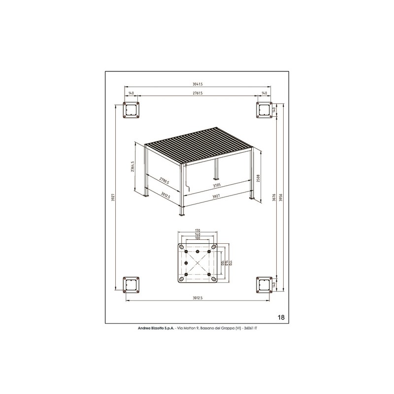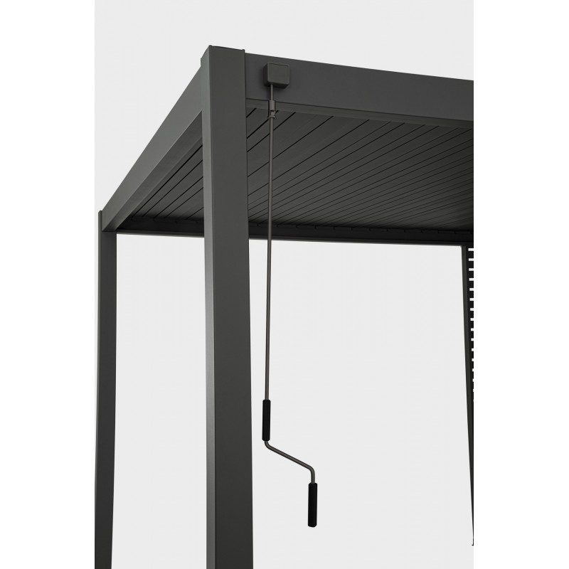 Pergola elegante e funzionale realizzata in alluminio verniciato a polvere (poliestere), perfetta per spazi esterni moderni. Dotata di tetto lamellare orientabile manualmente tramite manovella, con lame frangisole a doppio strato (173x30 mm) per una gestione ottimale di luce e ventilazione. Struttura solida con pali portanti 111x111 mm e traversi 140x75 mm. Sistema di drenaggio integrato nei pali, che garantisce un deflusso efficace e discreto dell’acqua piovana. Completa di viteria in acciaio inox per una maggiore resistenza agli agenti atmosferici. Fornita in kit da assemblare.