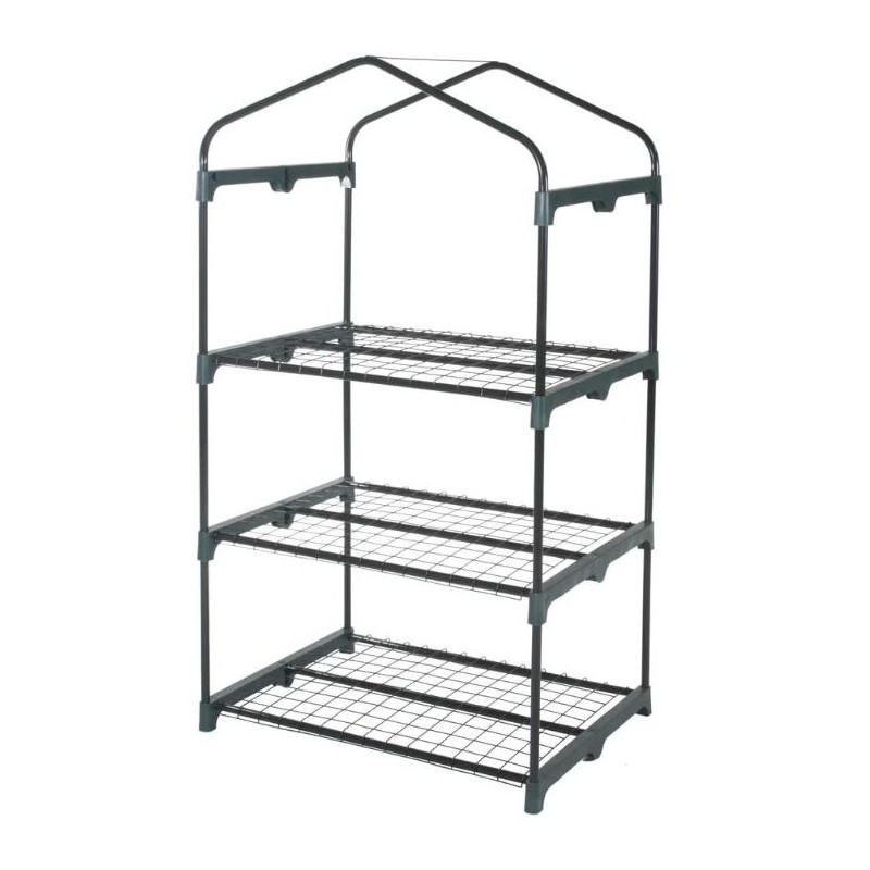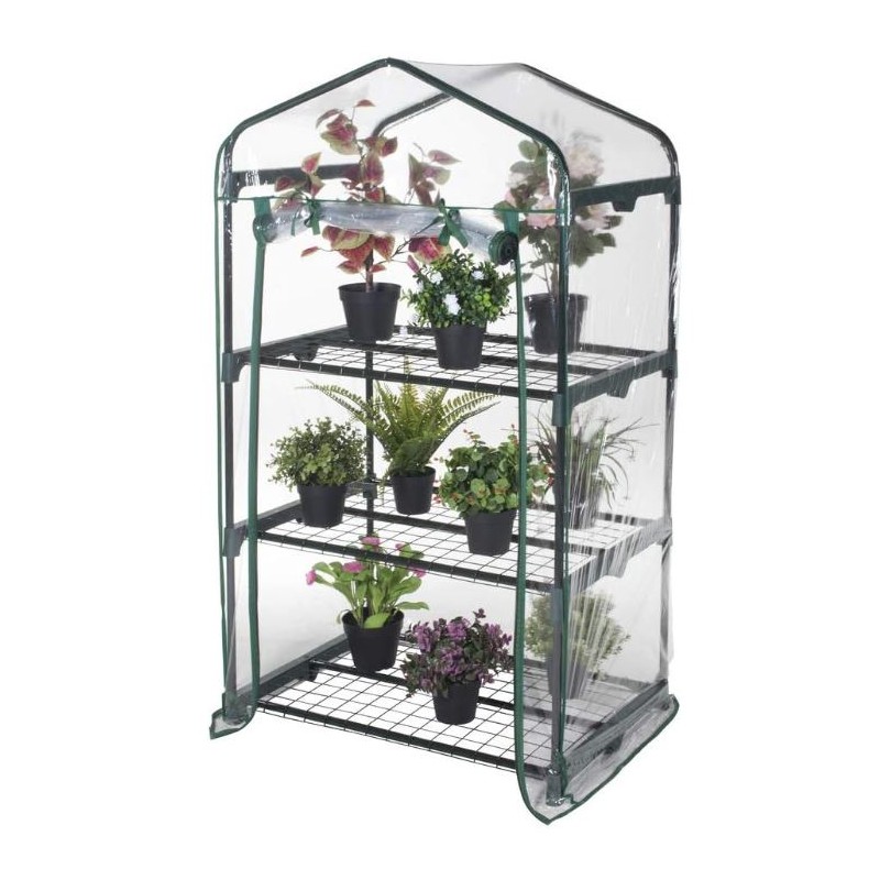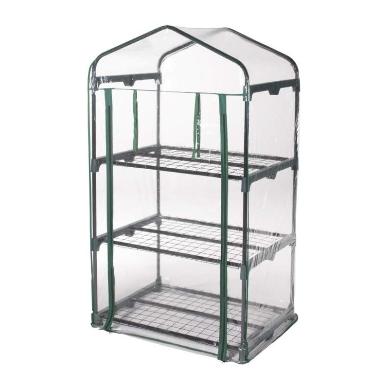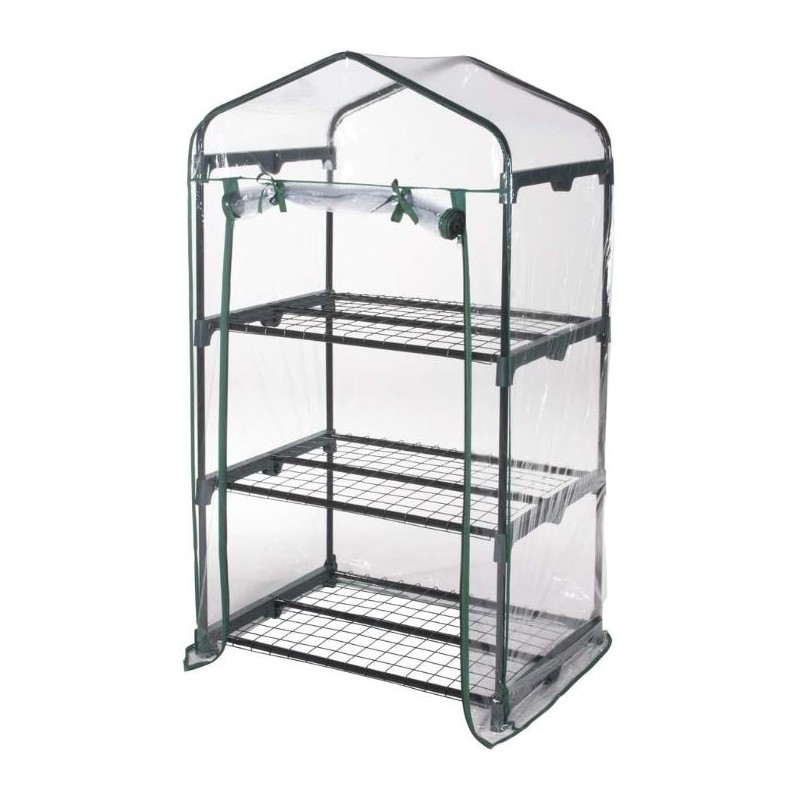 GLOUPIE Serra Da Giardino A 3 Ripiani In Acciaio Verniciato Cromato, Completa Di Telo In PVC Trasparente, L 69 x P 49 x H 125 Cm