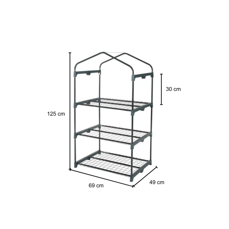 [Qualita' certificata]: Gloupie serra da giardino e da balcone robusta a 3 ripiani in acciaio verniciato a polvere epossidica cromata resistente alle intemperie, ai raggi uv e ai graffi, completa di telo in pvc trasparente arrotolabile verso l'alto con apertura frontale mediante cerniera per il controllo e la protezione delle piante, lunghezza 69 cm x profondità 49 cm x altezza 125 cm, perfetta per il giardinaggio e la cura delle piante