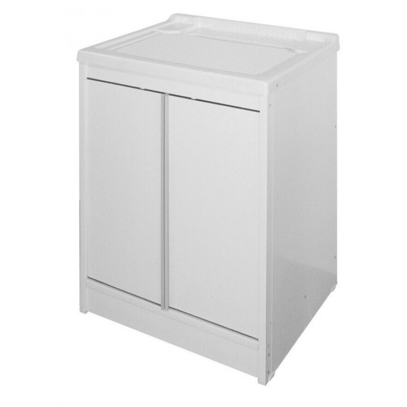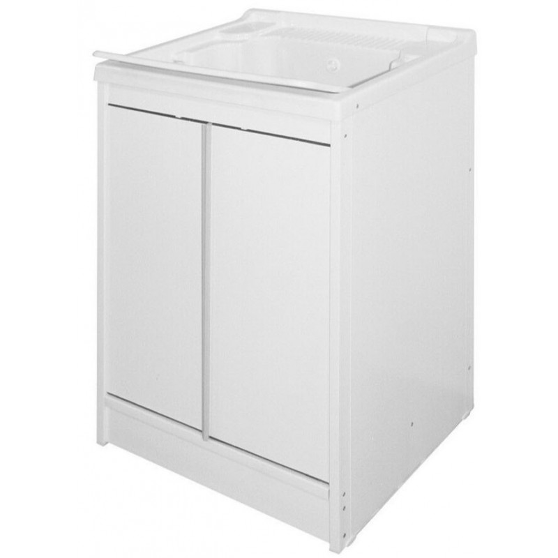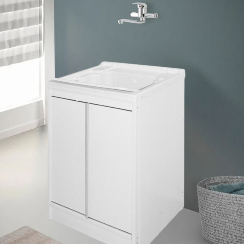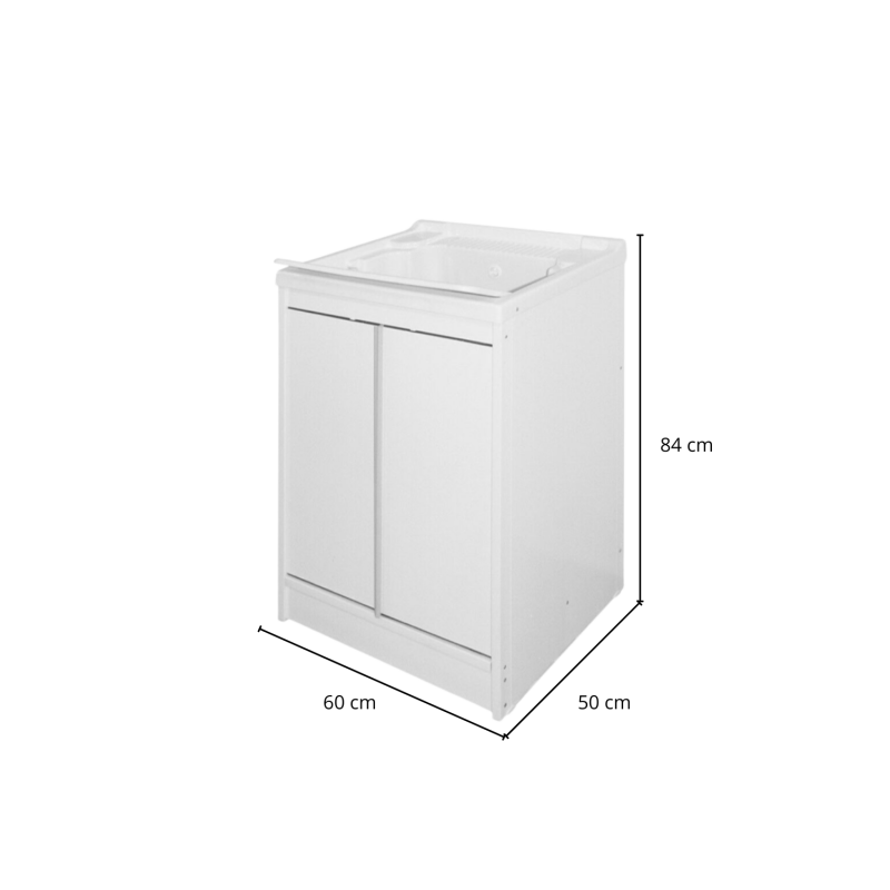 [Qualita' certificata made in italy]: Gloupie mobile lavatoio in resina e pvc bianco ideale sia per ambienti interni che esterni con 2 ante e piano di lavaggio richiudibile, lunghezza 60 cm x profondità 50 cm x altezza 84 cm, completo di tavoletta lava panni e kit di scarico con sifone e piletta troppo pieno, 100% made in italy