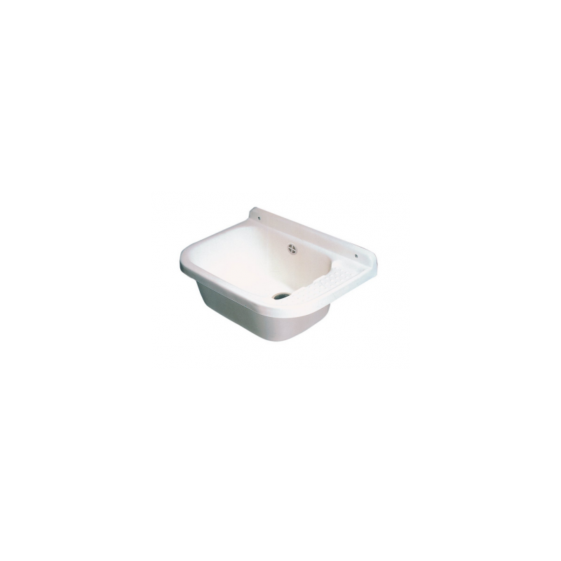 Lavatoio a parete in resina. Completo di piletta, sifone, tasselli e staffa per il fissaggio. Dimensioni cm 50x35x24