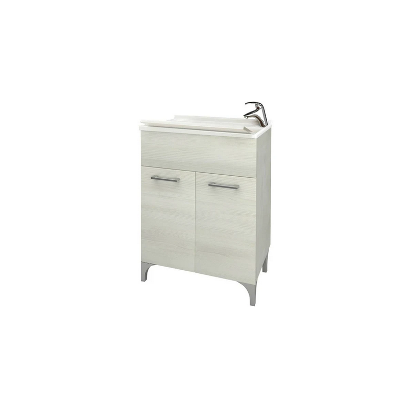 Il mobile Lavatoio per interno 60×50 Rovere Bianco comprende l’asse lavapanni in ABS , asportabile, il lavello in acrilico, predisposto per il foro del rubinetto in entrambi i lati, il sifone e la piletta, la struttura è in mdf con 2 ante provvisto di maniglie e piedini in abs cromato.