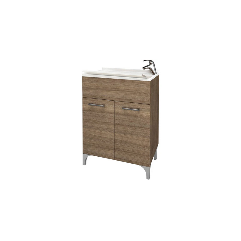 Il mobile Lavatoio per interno 60×50 Rovere fumo comprende l’asse lavapanni in ABS , asportabile, il lavello in acrilico, predisposto per il foro del rubinetto in entrambi i lati, il sifone e la piletta, la struttura è in mdf con 2 ante provvisto di maniglie e piedini in abs cromato.