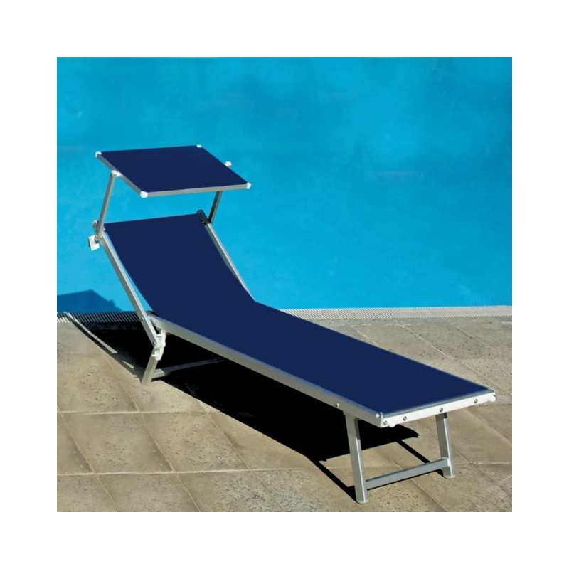 - GLOUPIE Lettino Prendisole Kentucky In Alluminio Verniciato Cromo Con Parasole Orientabile, Texilene Blu, L 186 x P 67 x H 40 Cm