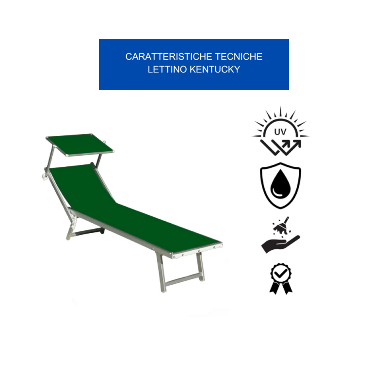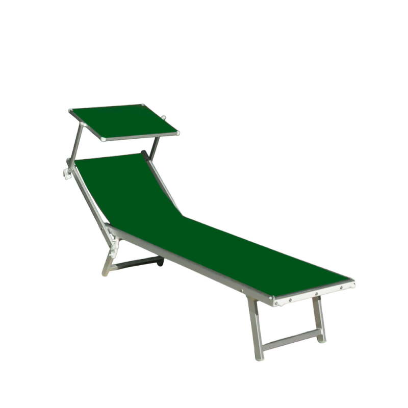 - GLOUPIE Lettino Prendisole Kentucky In Alluminio Verniciato Cromo Con Parasole, Texilene Verde, L 186 x P 67 x H 40 Cm