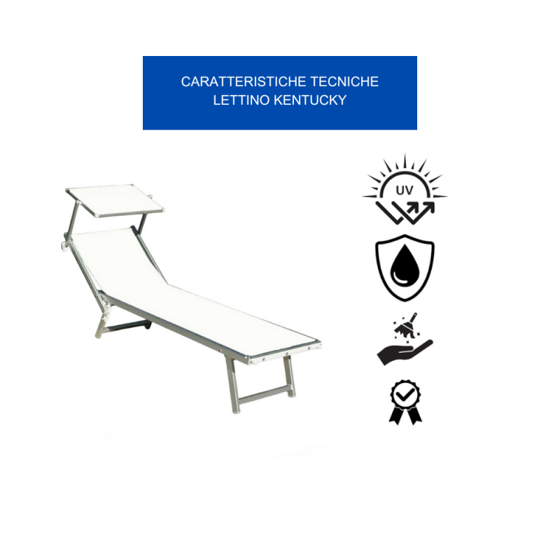 Kentucky Non è Solo Un Lettino Prendisole, Ma Un Vero E Proprio Complemento D'Arredo Che Arricchisce Il Tuo Spazio Outdoor. Il Lettino Kentucky è Facile Da Pulire. Il Textilene, Tessuto Di Cui è Composta La Seduta, è Resistente All'Acqua E Allo Sporco. Basterà Una Spugna Umida E Un Detergente Delicato Per Mantenerlo In Perfette Condizioni. La Scelta Ideale Per Trasformare Il Tuo Spazio Esterno In Un'Oasi Di Relax Personalizzata