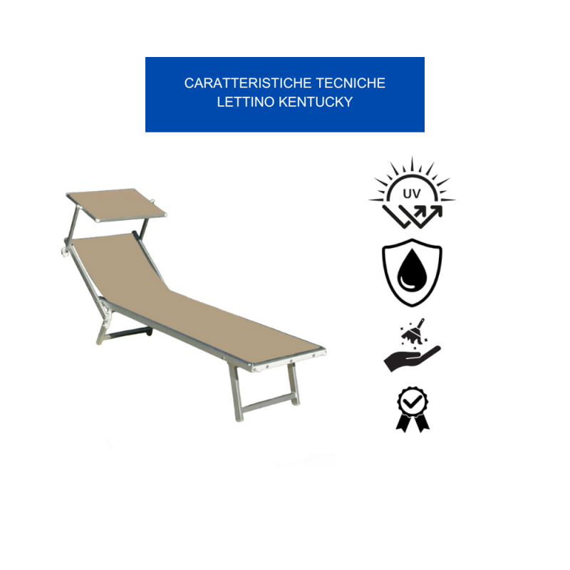 Kentucky Non è Solo Un Lettino Prendisole, Ma Un Vero E Proprio Complemento D'Arredo Che Arricchisce Il Tuo Spazio Outdoor. Il Lettino Kentucky è Facile Da Pulire. Il Textilene, Tessuto Di Cui è Composta La Seduta, è Resistente All'Acqua E Allo Sporco. Basterà Una Spugna Umida E Un Detergente Delicato Per Mantenerlo In Perfette Condizioni. La Scelta Ideale Per Trasformare Il Tuo Spazio Esterno In Un'Oasi Di Relax Personalizzata