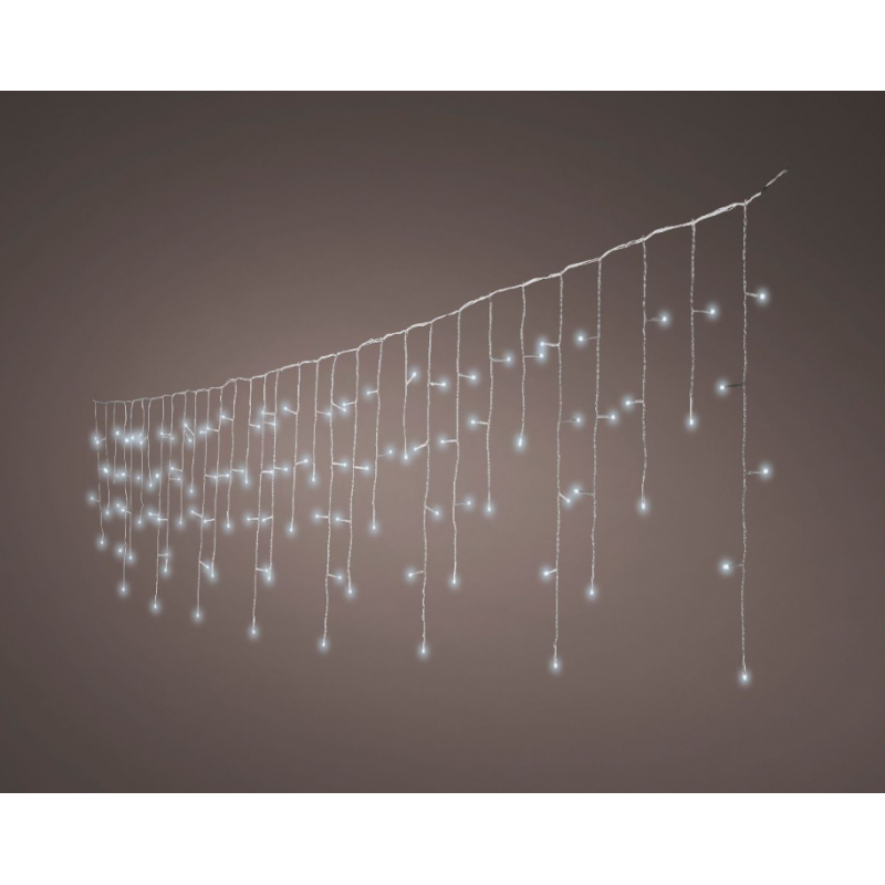 Tenda Luminosa Natalizia A Cascata 256 Led Luce Bianco Freddo 8 Funzioni 375 x h 60 cm