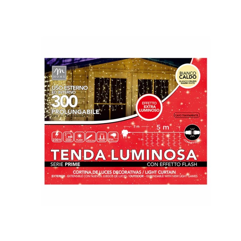 - Tenda Luci 300 Led Bianco Caldo Lunghezza 5mt x Altezza 1 mt
