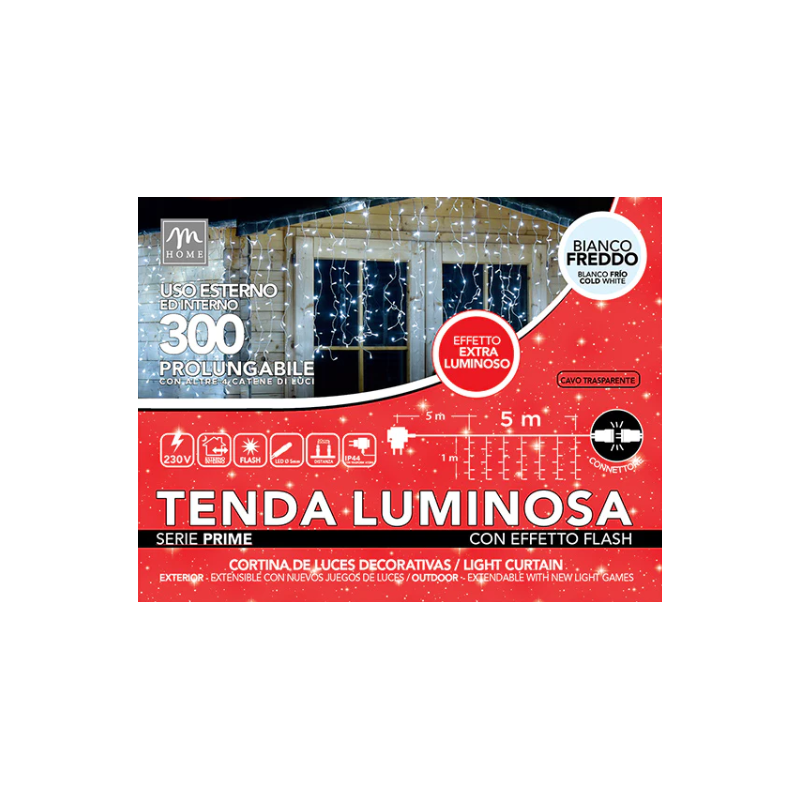 Tenda Luci Natalizie 300 Led Bianco Freddo Effetto Flash Da Esterno 10 mt