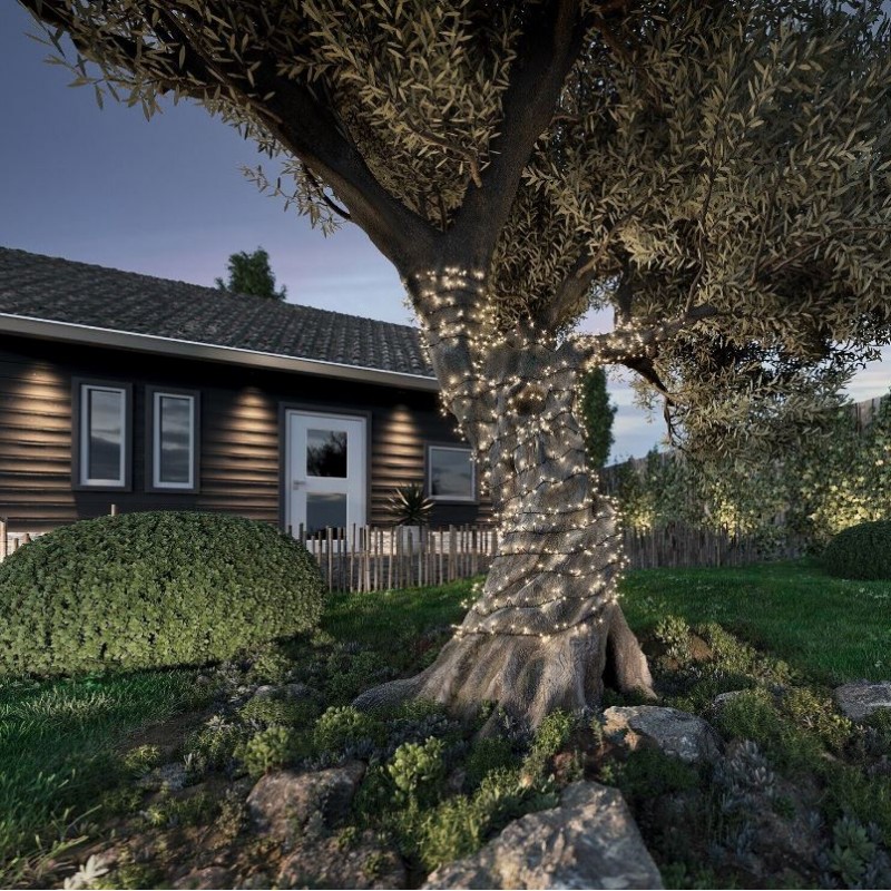 Luci Natalizie Solar 750 Led Bianco Caldo 8 Funzioni Effetto Scintillante 16 mt