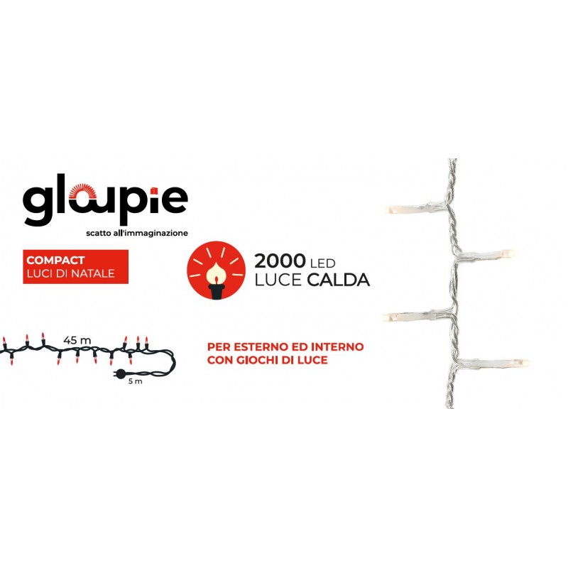 Avvolgi La Tua Casa In Un'Atmosfera Incantevole Con Le Luci Gloupie Compact. La Loro Calda Luce Dorata, Diffusa Da 2000 Led Suddivisi Su Di Un Cavo Trasparente Lungo 50 Metri (45 Metri Di Luci Con Distanza Fra Loro Di 2,2 Cm e 5 Metri Di Solo Cavo Per Un Migliore Collegamento Alla Presa Domestica), Creerà Un'Atmosfera Festosa E Accogliente. Ideali Sia Su Balconi, Facciate, O Qualsivoglia Spazio E Oggetto Interno O Esterno