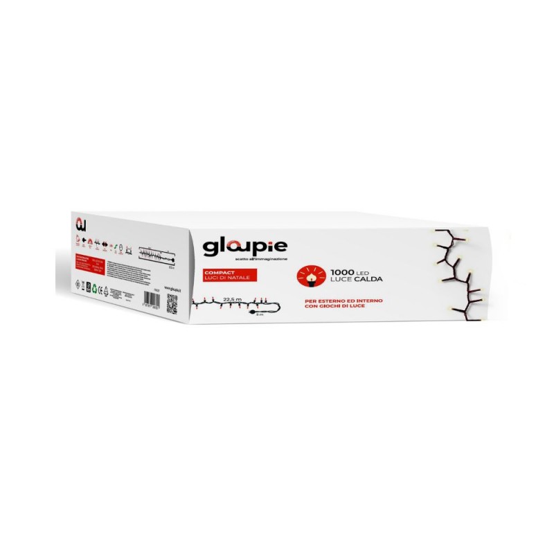 Avvolgi La Tua Casa In Un'Atmosfera Incantevole Con Le Luci Gloupie Compact. La Loro Calda Luce Dorata, Diffusa Da 1000 Led Suddivisi Su Di Un Cavo Verde Lungo 27,5 Metri (22,5 Metri Di Luci Con Distanza Fra Loro Di 2,2 Cm e 5 Metri Di Solo Cavo Per Un Migliore Collegamento Alla Presa Domestica), Creerà Un'Atmosfera Festosa E Accogliente. Ideali Sia Su Alberi Di Natale, Balconi, Facciate, O Qualsivoglia Spazio E Oggetto Interno O Esterno