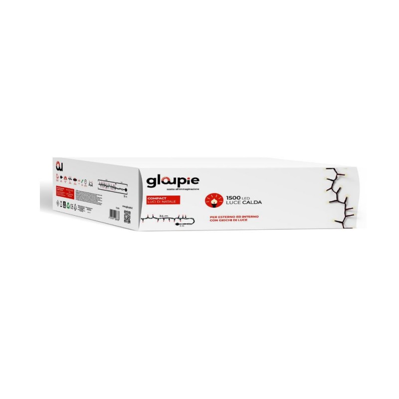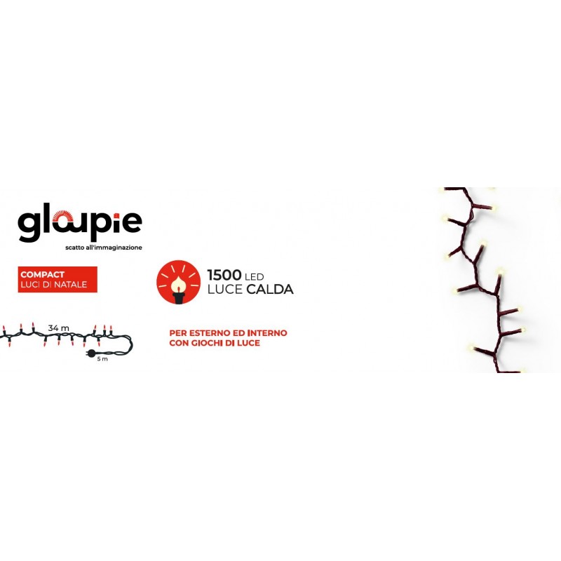 UN TOCCO DI MAGIA PER LE TUE FESTIVITA': Avvolgi La Tua Casa In Un'Atmosfera Incantevole Con Le Luci Gloupie Compact. La Loro Calda Luce Dorata, Diffusa Da 1500 Led Suddivisi Su Di Un Cavo Verde Lungo 39 Metri (34 Metri Di Luci Con Distanza Fra Loro Di 2,2 Cm e 5 Metri Di Solo Cavo Per Un Migliore Collegamento Alla Presa Domestica), Creerà Un'Atmosfera Festosa E Accogliente. Ideali Sia Su Balconi, Facciate, O Qualsivoglia Spazio E Oggetto Interno O Esterno