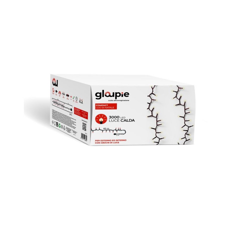Avvolgi La Tua Casa In Un'Atmosfera Incantevole Con Le Luci Gloupie Compact. La Loro Calda Luce Dorata, Diffusa Da 2000 Led Suddivisi Su Di Un Cavo Verde Lungo 50 Metri (45 Metri Di Luci Con Distanza Fra Loro Di 2,2 Cm e 5 Metri Di Solo Cavo Per Un Migliore Collegamento Alla Presa Domestica), Creerà Un'Atmosfera Festosa E Accogliente. Ideali Sia Su Balconi, Facciate, O Qualsivoglia Spazio E Oggetto Interno O Esterno