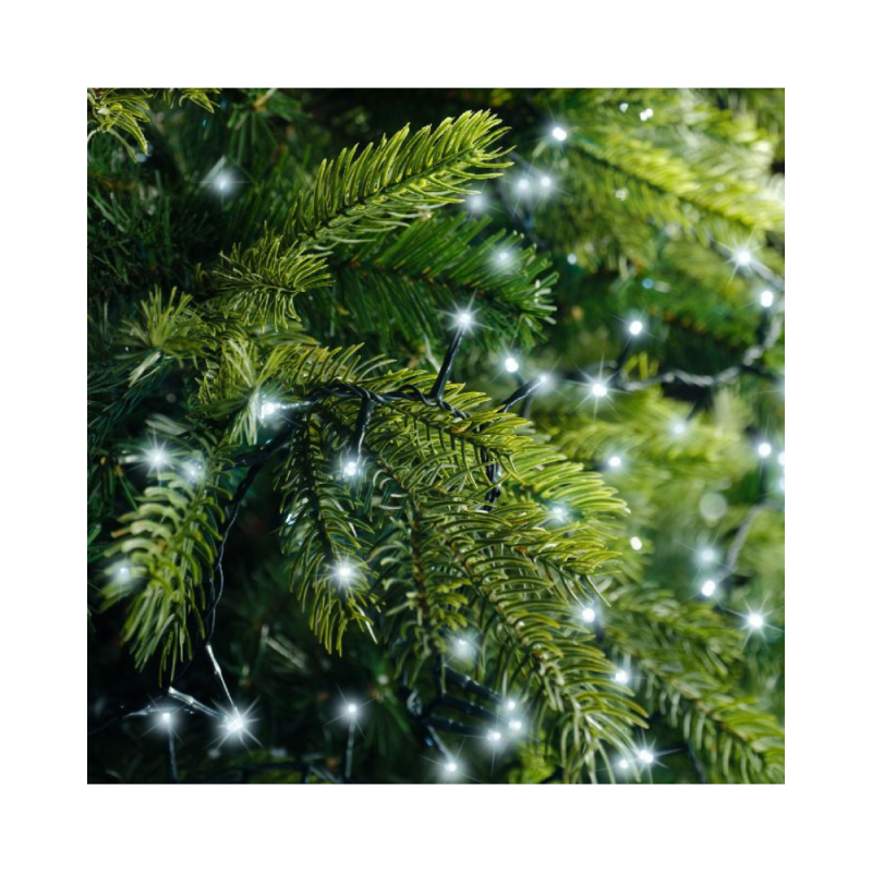 GLOUPIE Luci Di Natale Compact da 16 MT Con 500 led Bianco Freddo, Cavo Verde, Distanza Luci 2.2 Cm, Funzione Memoria e Timer