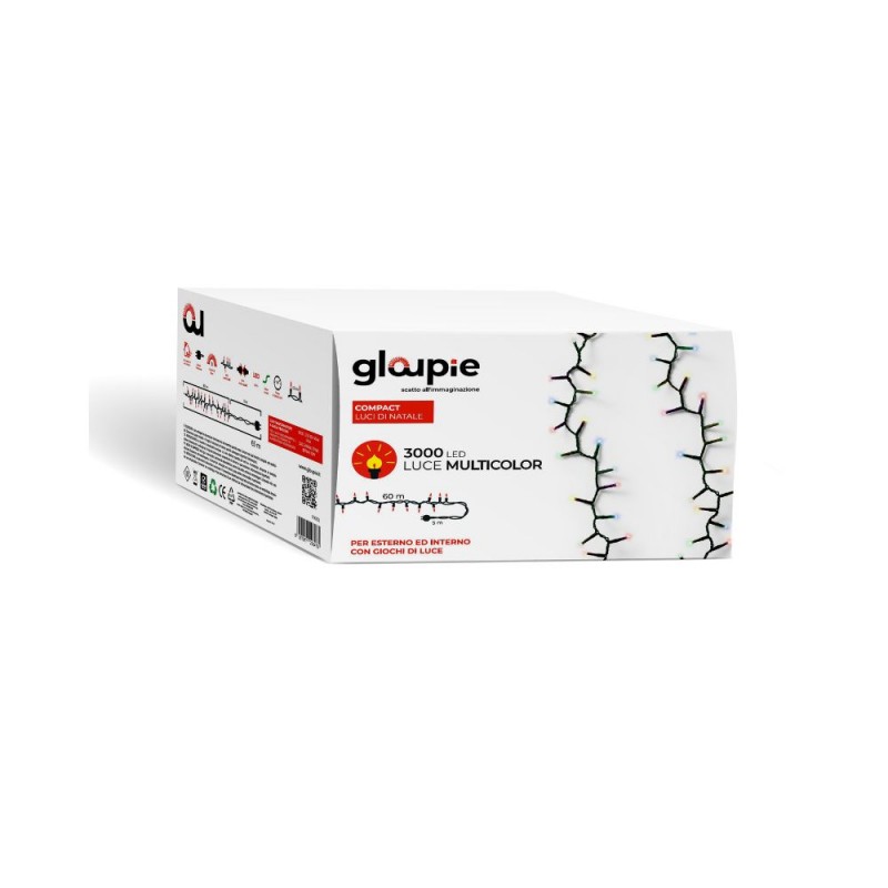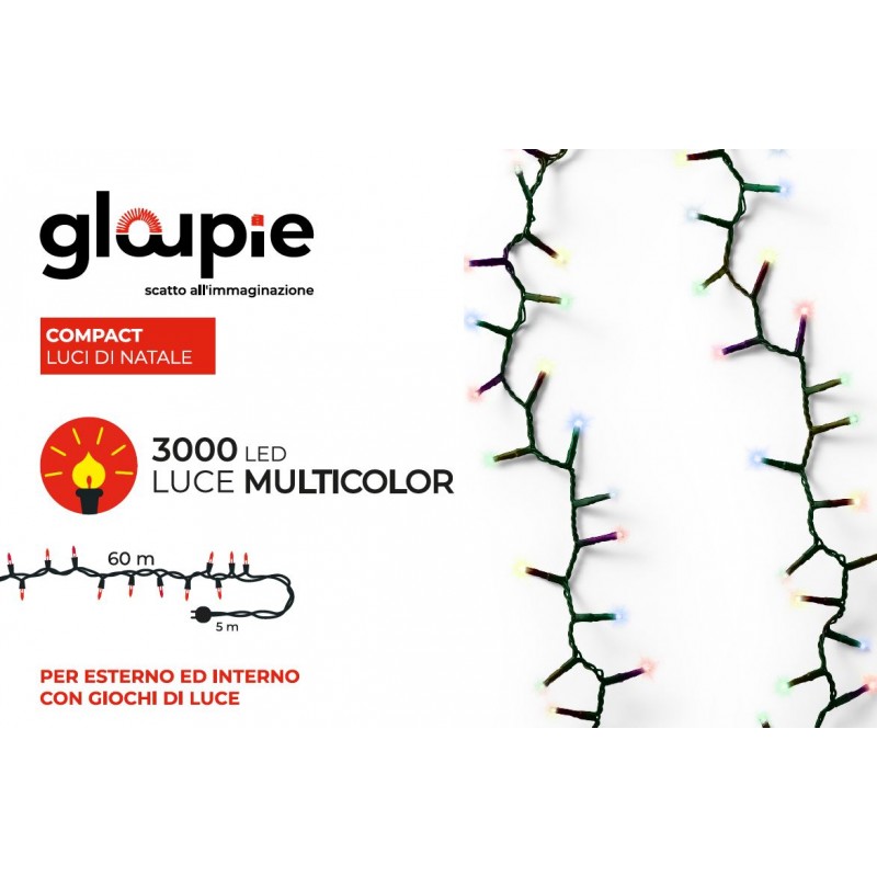 Avvolgi La Tua Casa In Un'Atmosfera Incantevole Con Le Luci Gloupie Compact. La Loro Luce Multicolore Dalle Varie Tonalità (Rosso, Verde, Blu, Giallo), Diffusa Da 3000 Led Suddivisi Su Di Un Cavo Verde Lungo 65 Metri (60 Metri Di Luci Con Distanza Fra Loro Di 2,2 Cm e 5 Metri Di Solo Cavo Per Un Migliore Collegamento Alla Presa Domestica), Creerà Un'Atmosfera Festosa E Accogliente. Ideali Sia Su Balconi, Facciate, O Qualsivoglia Spazio E Oggetto Interno O Esterno