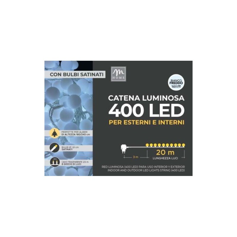 Catena luminosa 400 led bianco freddo per interni ed esterni con bulbi satinati