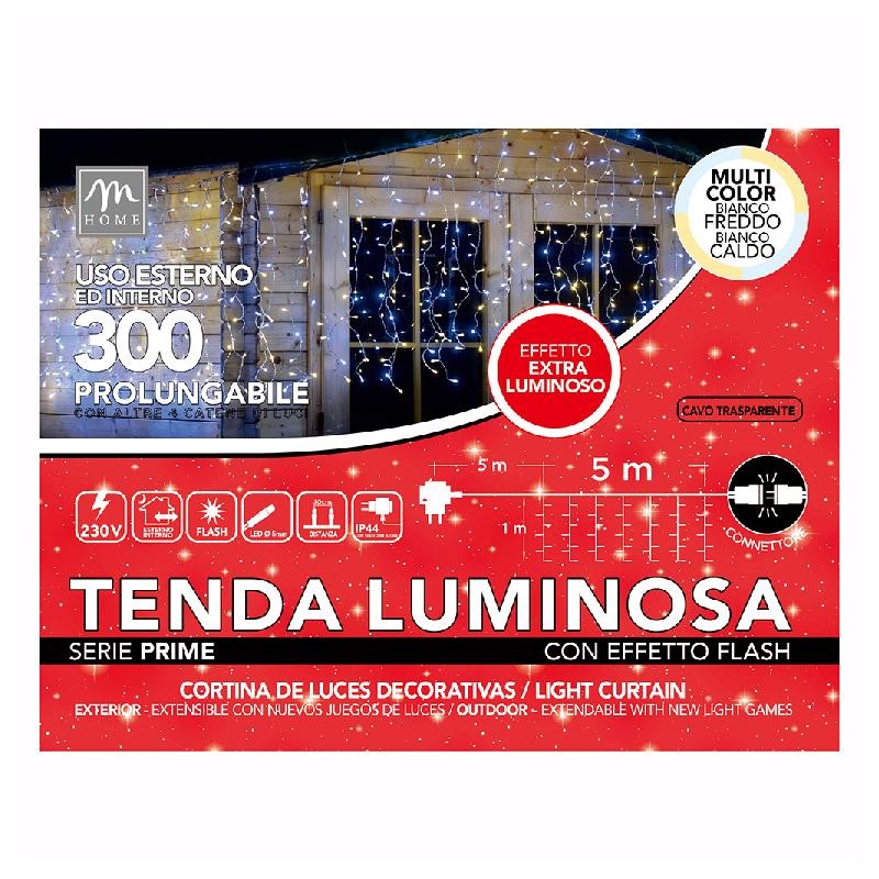 Tenda luminosa 300 led bianco caldo e freddo per uso interno ed esterno
