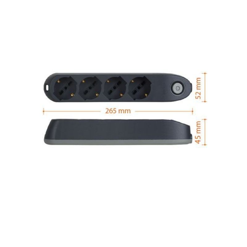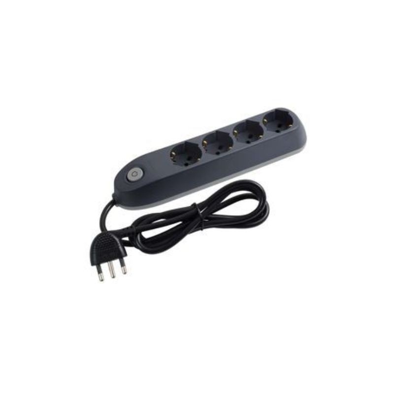 La Multipresa Poker 3684GB, di colore grigio, è dotata di 4 prese 2P+T compatibili con spine tedesche, italiane da 10A e 16A.