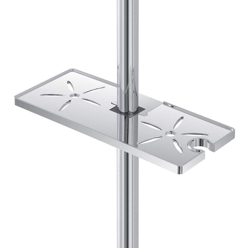 mensola universale per colonna doccia in abs cromato da mettere nella doccia nell'arredare un bagno con gusto e precisione è molto importante scegliere con cura ed attenzione anche gli accessori giusti. estetica e design non devono sacrificare praticità e funzionalità. la mensola in abs cromata per colonne e saliscendi doccia è la soluzione perfetta per portare ordine e pulizia all'interno della tua cabina doccia. un accessorio di design realizzato in resistente abs. il foro della mensola, per consentire il passaggio del saliscendi, ha un diametro estendibile di 22 - 25 mm. la generose dimensioni di questa mensola per box doccia, ben 30 cm, permettono di alloggiare con comodità tutti i tuoi accessori da bagno.