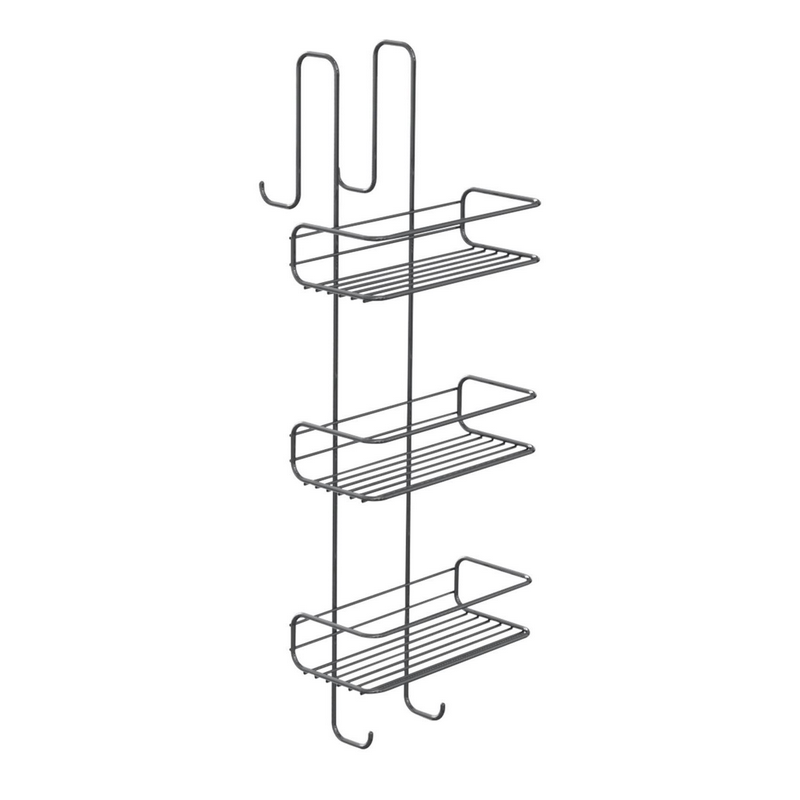 Portasapone a due ripiani in acciaio cromato, per arredo box doccia o vasca.
