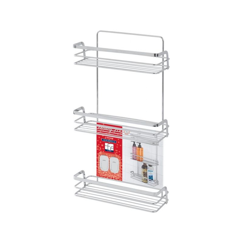Mensola rettangolare 3 ripiani in acciaio cromato.