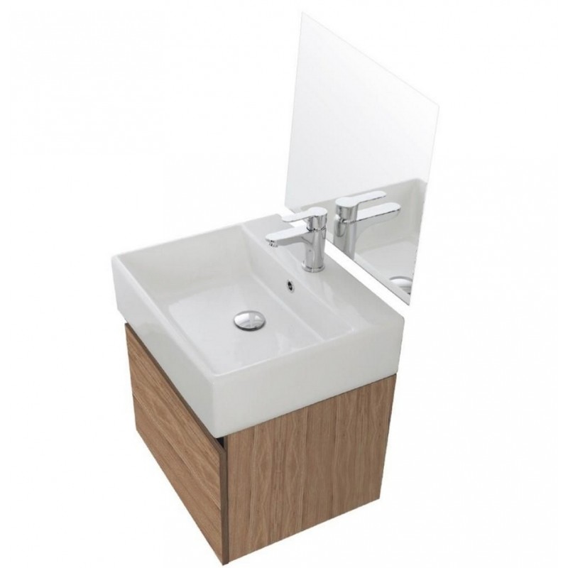 Composizione Bagno Kira 50 cm in Legno,Mobile Sospeso,Lavabo in ceramica 50 x 41,5 x 38 Senza Specchio