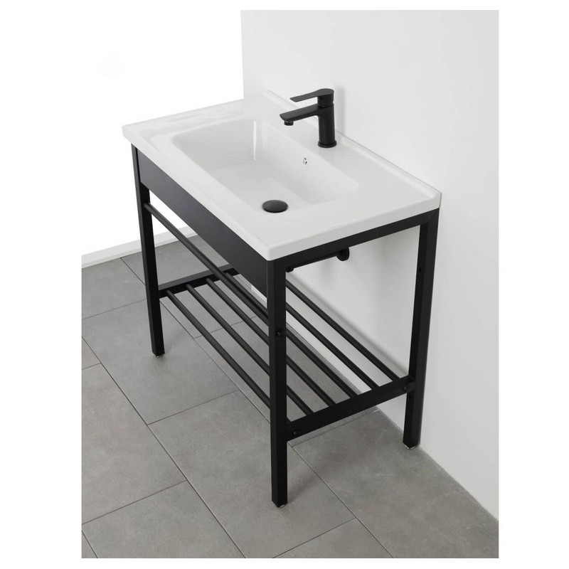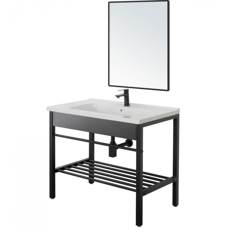 Composizione bagno dal design moderno e minimale, composta da struttura in metallo verniciato nero dalle dimensioni di 80x47x78 cm, lavabo integrato in ceramica e specchio coordinato. Una soluzione elegante e funzionale per arredare con stile qualsiasi ambiente bagno. Ideale per chi cerca praticità senza rinunciare all’estetica contemporanea.