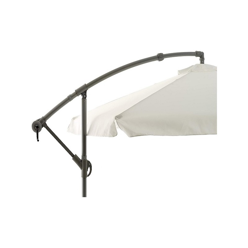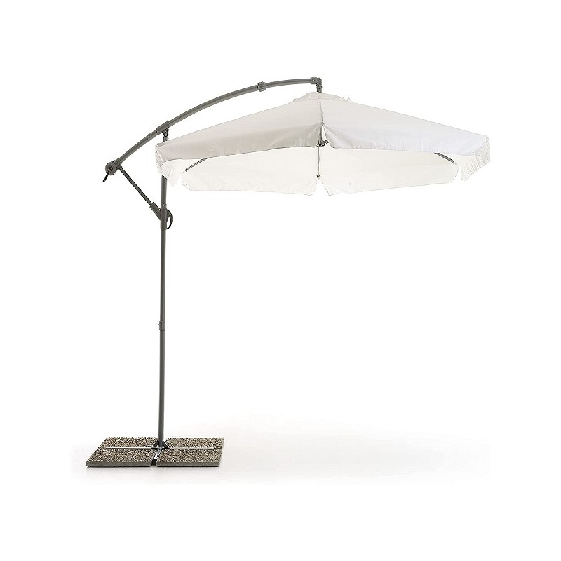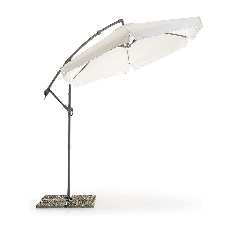 - GLOUPIE Ombrellone Decentrato Bianco Retrattile In Acciaio Verniciato Da Esterno,Base A Croce,A Banana Con Frangia,Tondo 3 Metri