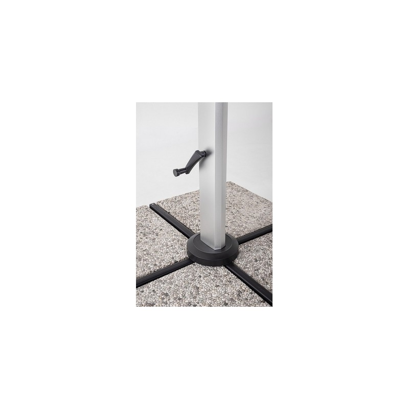 Telo color grigio scuro in poliestere 250gr/m2 con rivestimento in pa (poliammide) con camino antivento. base a croce in acciaio.