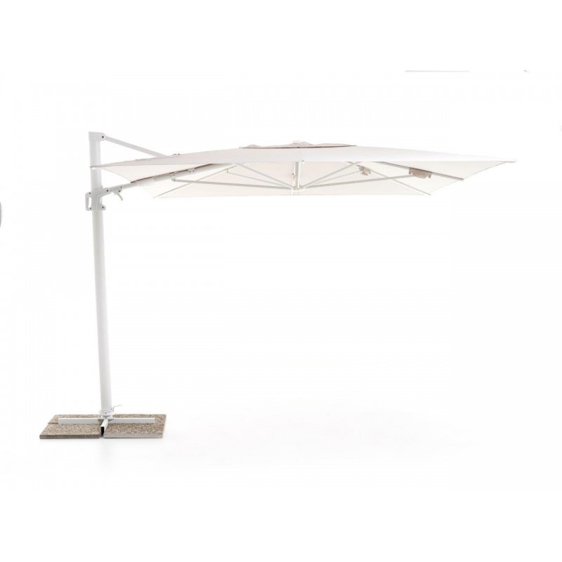 Design elegante e funzionalità avanzata: La struttura in alluminio verniciato a polvere epossidica di colore bianco conferisce all'ombrellone un aspetto elegante e moderno. Il palo decentrato permette di posizionare i mobili da giardino con maggiore flessibilità. Le 8 stecche da 14x23 mm con fine stecca ed elastici interni garantiscono robustezza e stabilità.