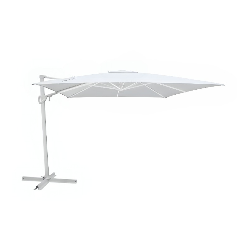 Design elegante e funzionalità avanzata: La struttura in alluminio verniciato a polvere epossidica di colore bianco conferisce all'ombrellone un aspetto elegante e moderno. Il palo decentrato permette di posizionare i mobili da giardino con maggiore flessibilità. Le 8 stecche da 13x19 mm con fine stecca ed elastici interni garantiscono robustezza e stabilità.
