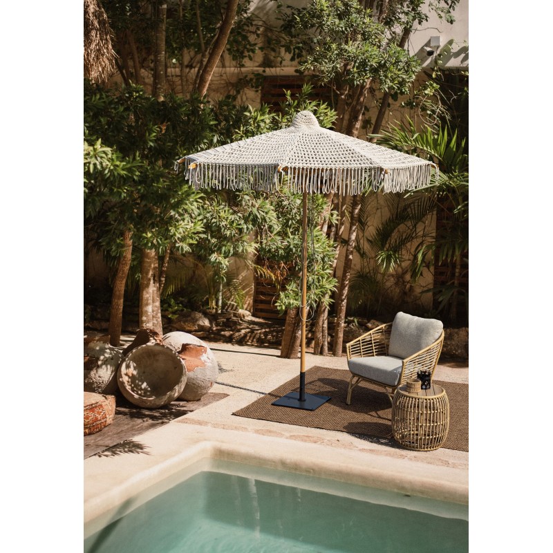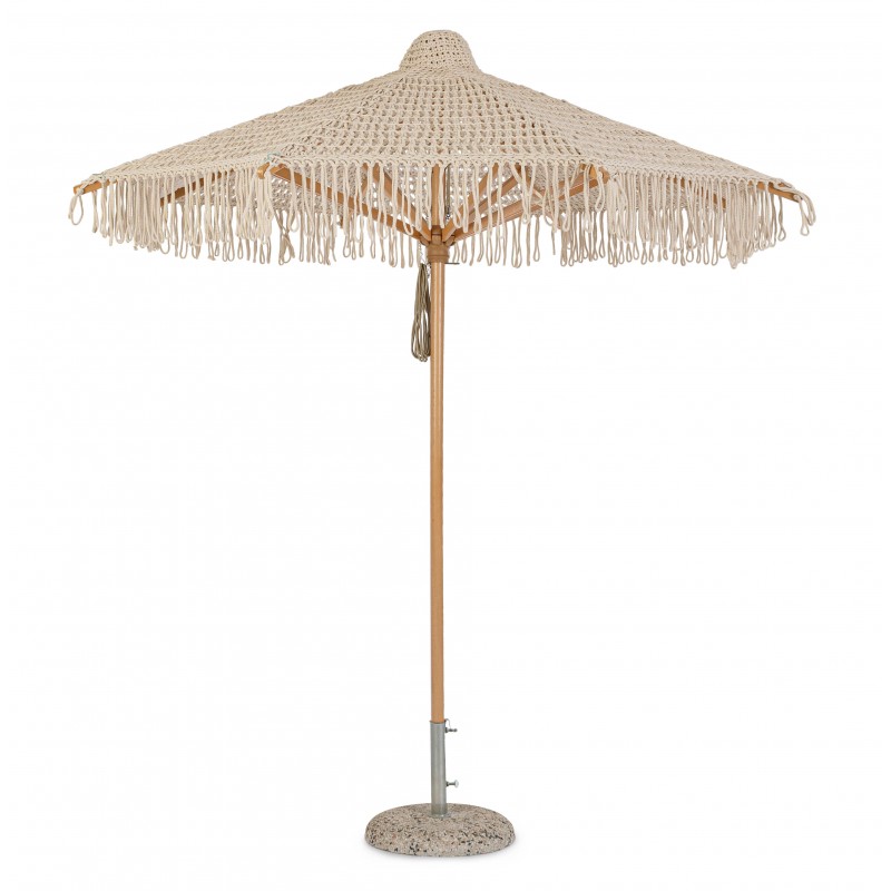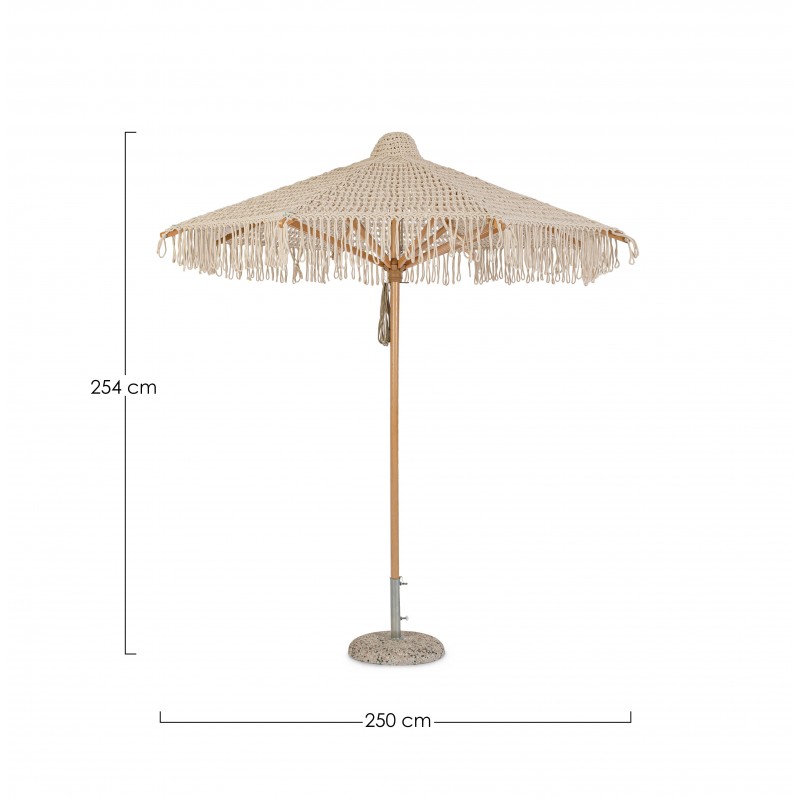 - Ombrellone in Legno di Faggio con Telo in Cotone Macramé e Base Non Inclusa