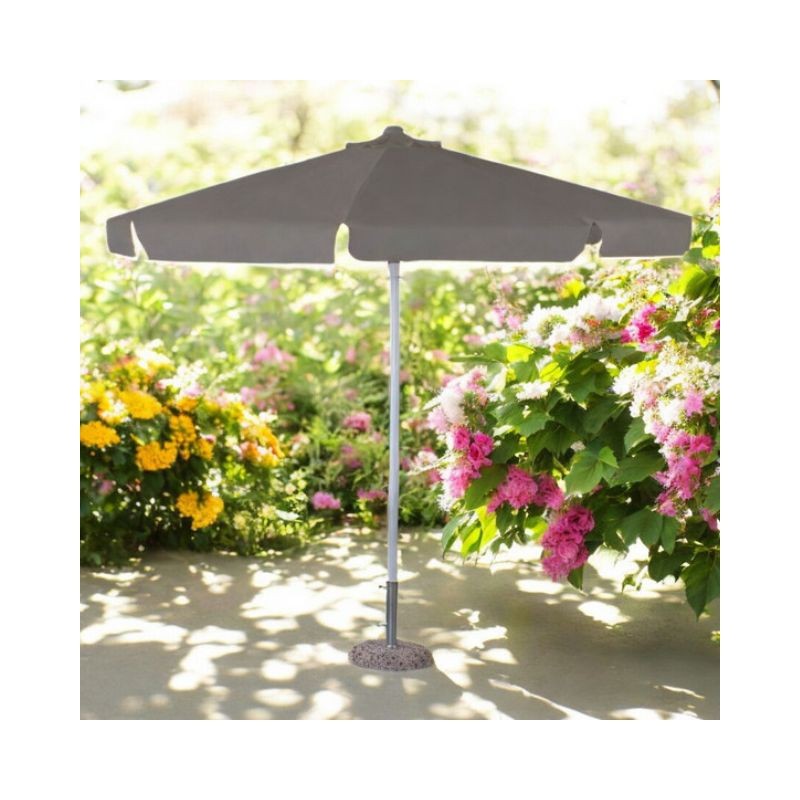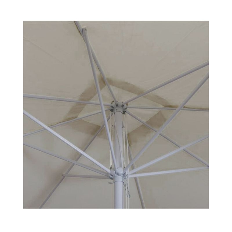 Grazie alla sua struttura solida, questo ombrellone offre un'ottima stabilità Con un palo da 48 mm di diametro, una struttura in alluminio, 8 stecche e una copertura in poliestere da 160 gr/m² con cuspide anti-vento, è la soluzione ideale per chi cerca praticità e stile in giardino, in piscina o in un bar. (Nota: la base non è inclusa)