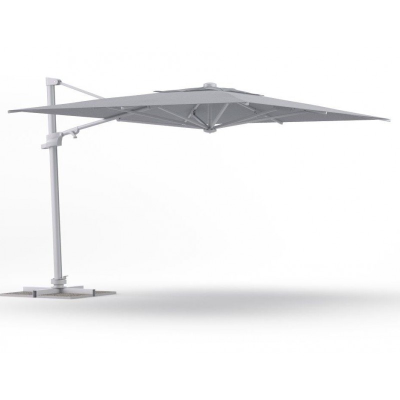Dotato di inclinazione regolabile multi-posizione Infinity, apertura retrattile con manovella e rotazione a 360° tramite pedale, questo ombrellone si adatta facilmente a ogni esigenza di ombreggiatura. Completa la struttura una base a croce alta (piastrelle non incluse – peso richiesto: 160 kg – suggerite 8 piastrelle standard). Dimensioni: Ombrellone aperto: 300 x 400 x 260/215 cm Telo: 3 x 4 metri