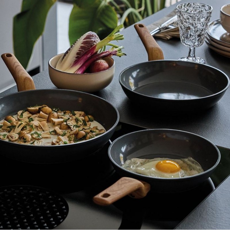 Due padelle, due diametri, infinite possibilità: Realizzate in alluminio 100% riciclato, queste padelle rappresentano un passo verso un futuro più verde, senza rinunciare alla qualità. Il loro rivestimento interno antiaderente PFAS Free, ecologico e naturale, ti permette di cucinare senza grassi aggiunti, per piatti più sani e leggeri.