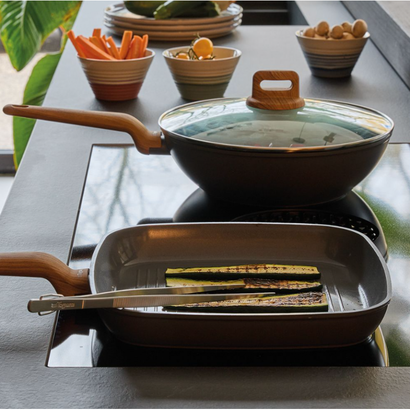 Manico: Soft touch effetto legno, antiscivolo e antiscottatura