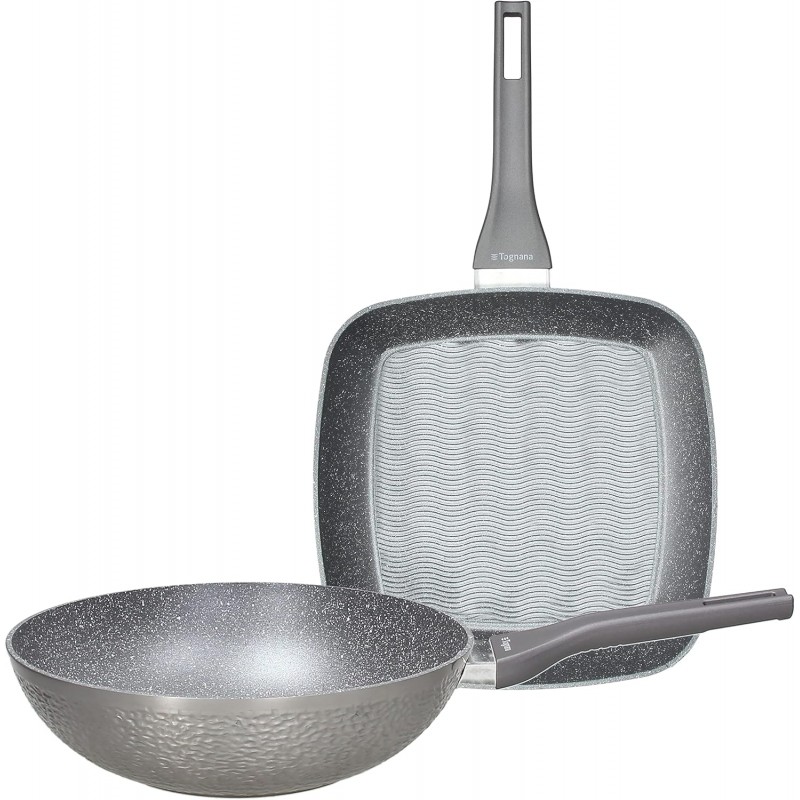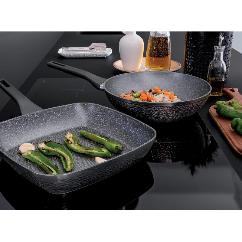 - Set 2 Pezzi Padella Wok 28 Cm + Grill 28x28 Cm Della Linea Grancucina Deep Moon
