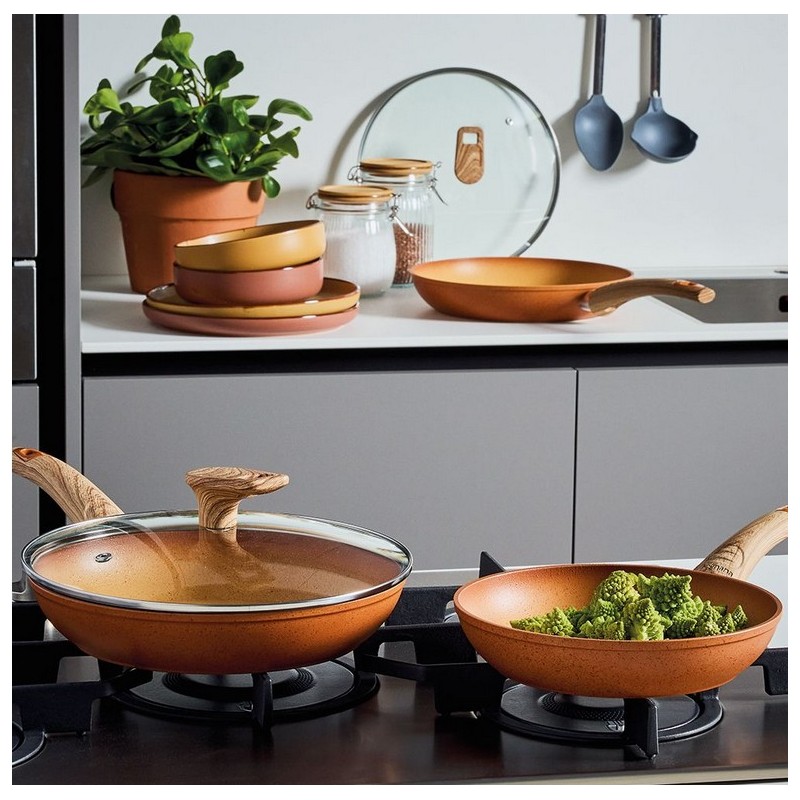 - Padella 1 Manico 32 cm - Alluminio Arancio Linea Traditional Stone
