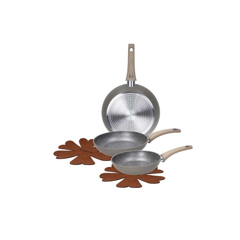 - Set 3 Padelle Tognana Eco in Alluminio Riciclato con Proteggipentola 20, 24, 28 cm Antiaderenti, Induzione, Colore Tortora