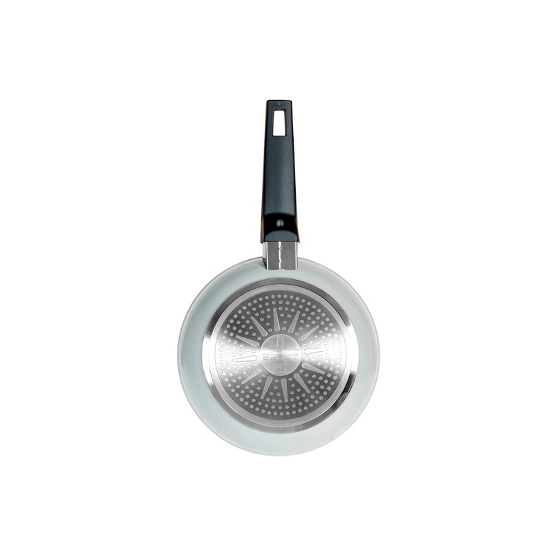 La sua particolarità è il fondo con rivestimento antiaderente Pfluon ad effetto spirale 3D e il delicato colore verde chiaro dell'esterno, il manico effetto soft-touch consentono una presa sicura e anti scottatura.